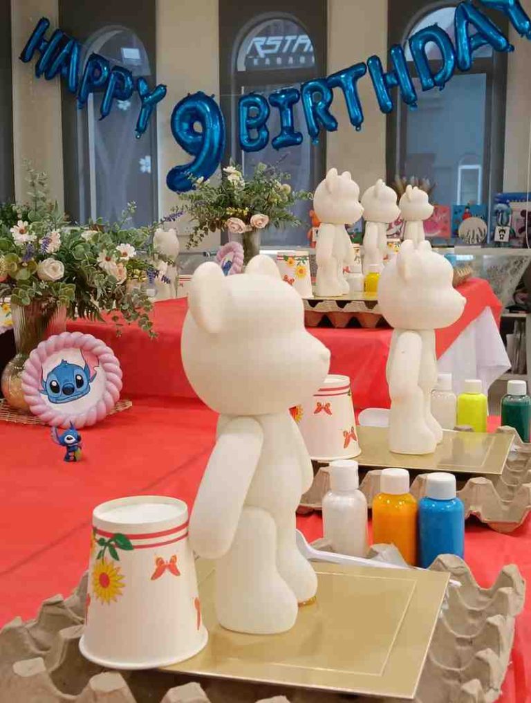 • All party decoration, table decorations, balloons, art materials, snacks and drinks will be already prepared.